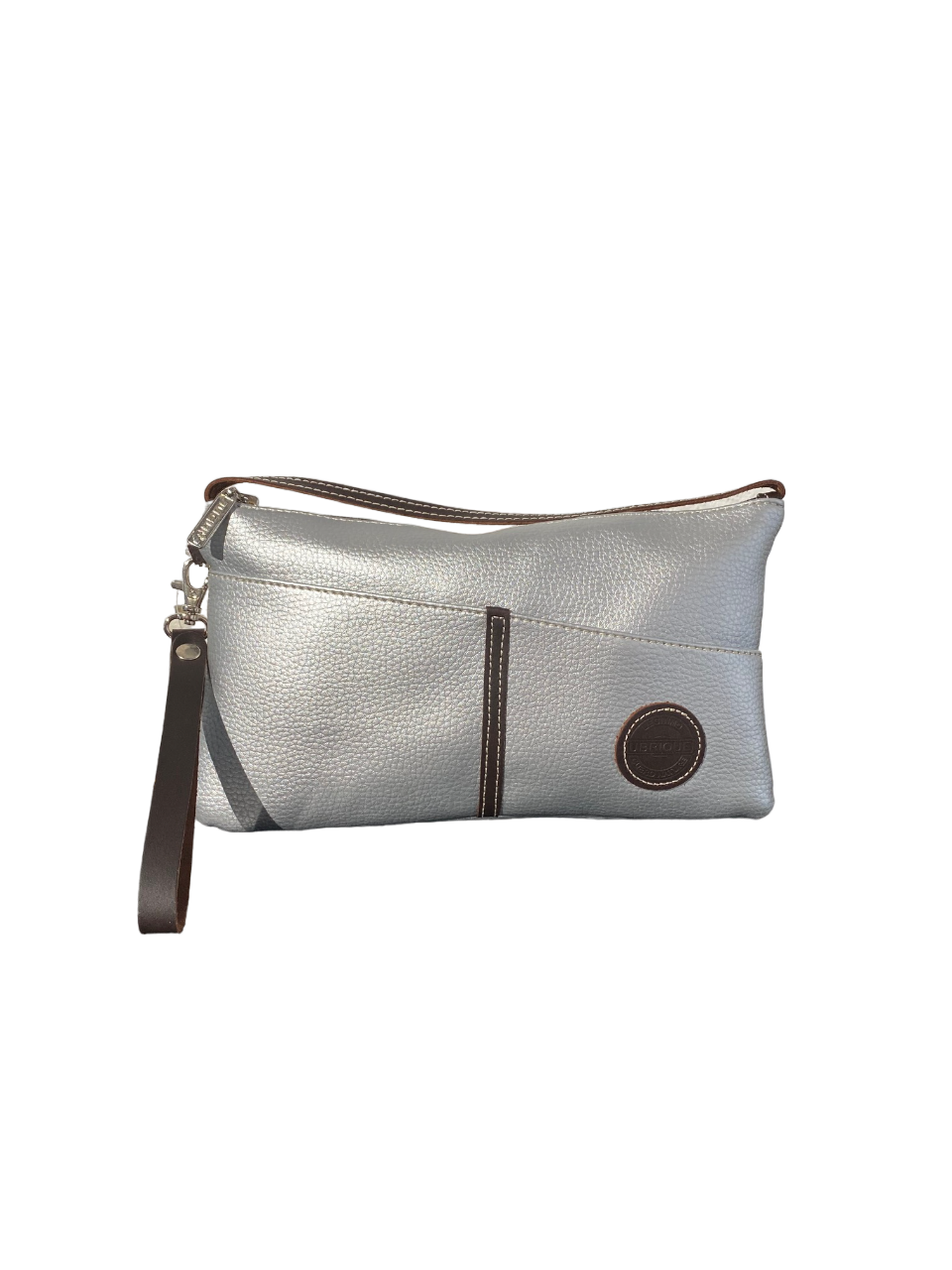 Bolso de cuero efecto plateado.