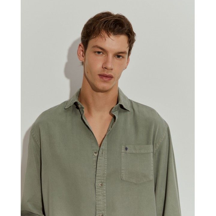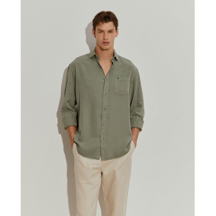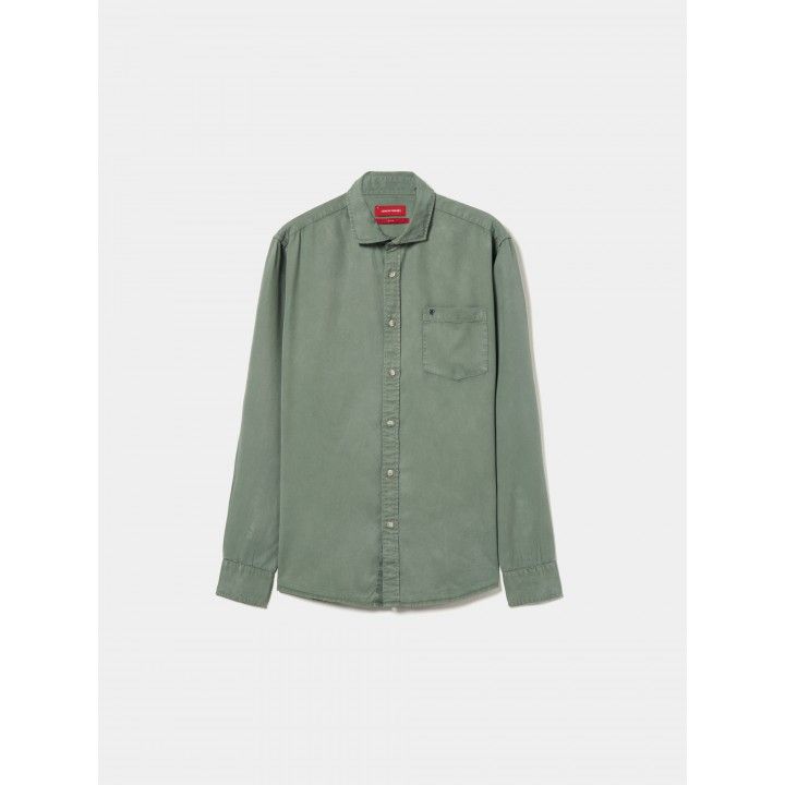 Camisa verde con bolsillo delantero, perfecta para un look refinado.