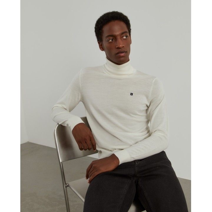 Jersey de cuello cisne , en color crudo. Tejido de lana Merino 100%.