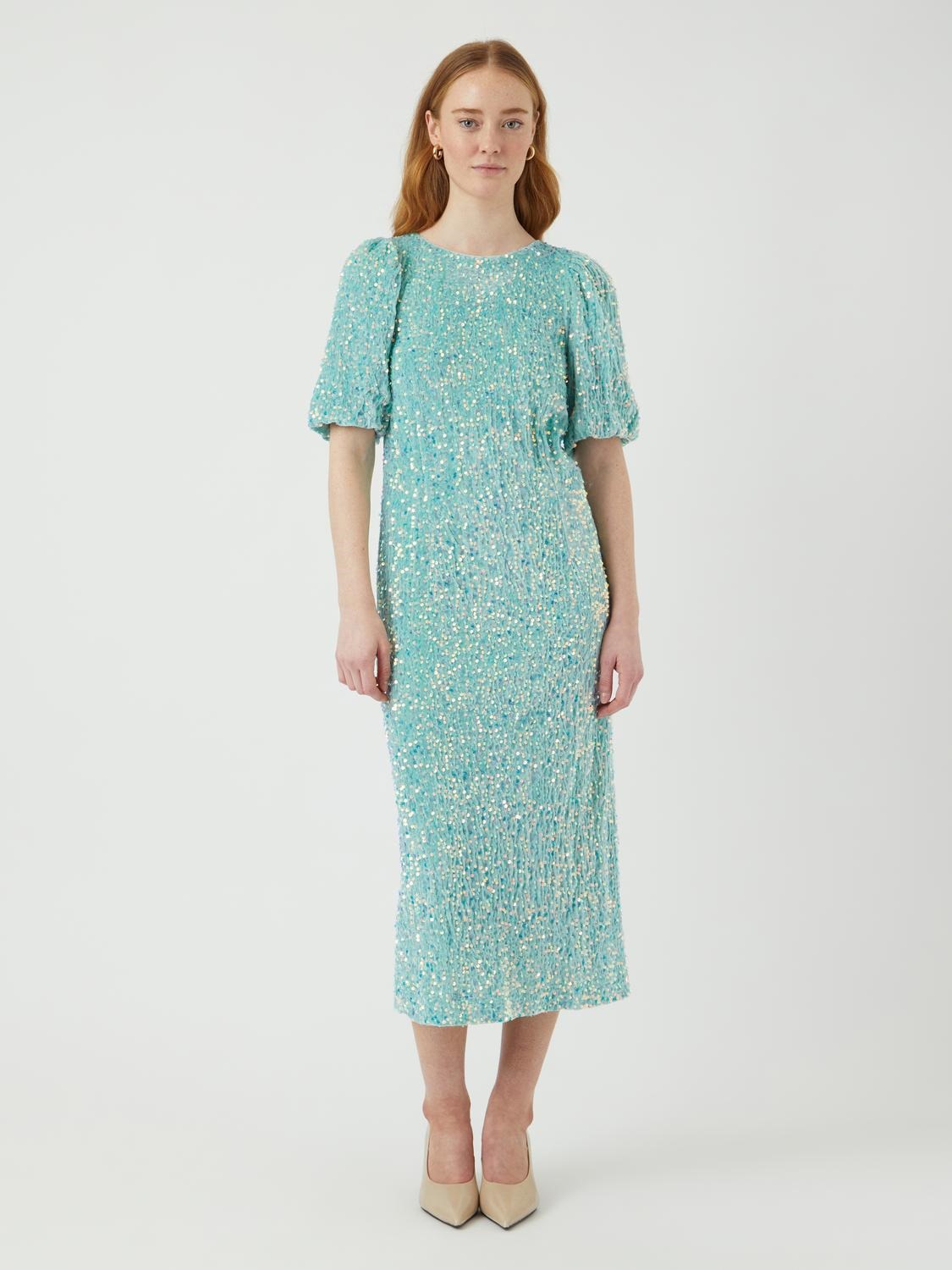 Brilla con estilo en este vestido verde cubierto de lentejuelas. Perfecto para fiestas y ocasiones especiales.